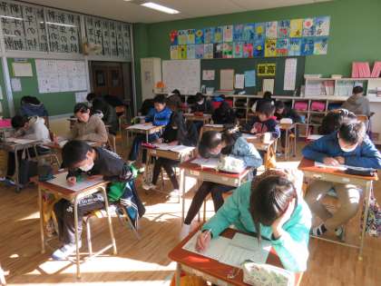 学習内容がしっかり定着しているかどうかを調べる定着度調査を行いました。みんな、時間いっぱいまで真剣に取り組んでいました。