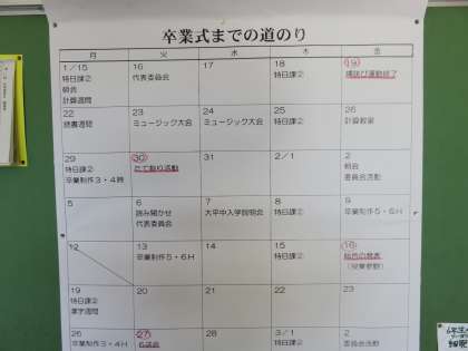 卒業に向かって意識を高めようと、日めくりカレンダーをみんなで作ったり、卒業式までの予定を掲示したりしました。
