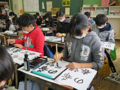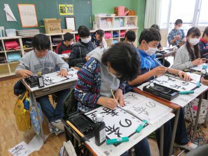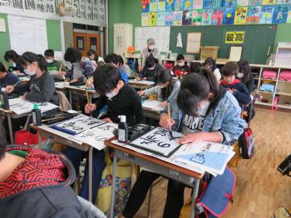 姿勢を正し、集中することで、どの子も字形の整った作品になりました。