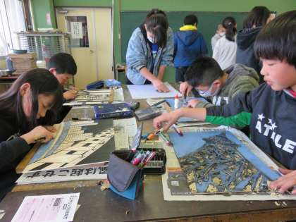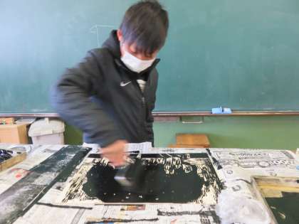 刷った後に、手直しをしている子もいました。小学校最後の図工作品なので、納得がいくまでやり遂げてほしいです。