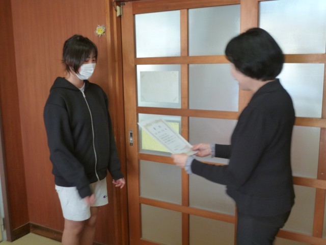 6年生児童の作品が、税の標語コンクールにおいて、入選をしました。担当者の方が学校に来てくださり、校長室で表彰式を行いました。とてもいい標語でしたと褒めていただき、賞状と景品をいただきました。