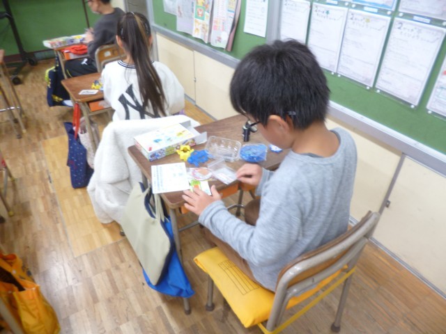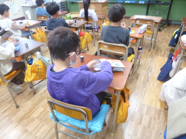 3年生理科「電気の通り道」の授業の様子です。これから電気について学習していく中で、実験等で使う学習キットの中身の確認をしました。どんなものが入っているのか、箱から出すのが楽しみです。「豆電球が入っている」「方位磁針も入っている」など、中身に興味津々でした。