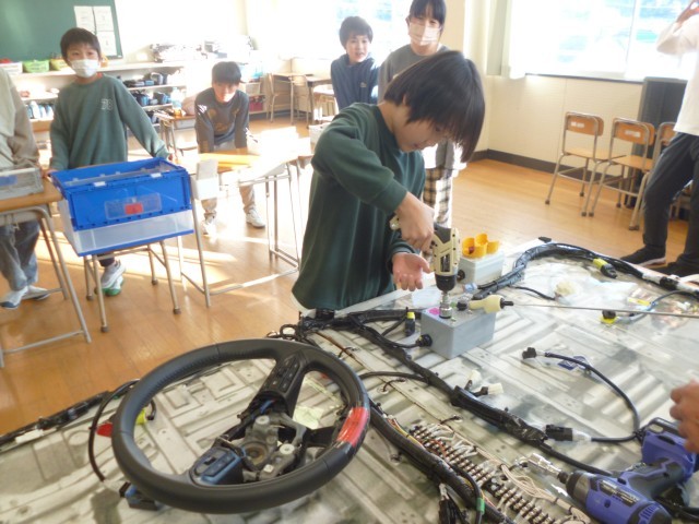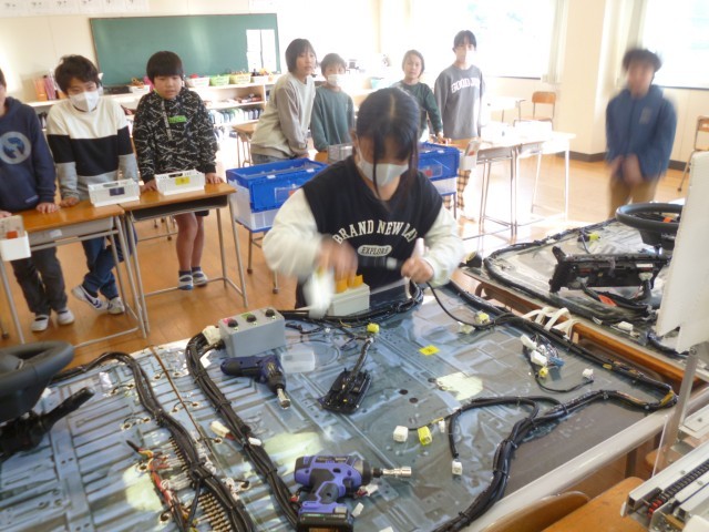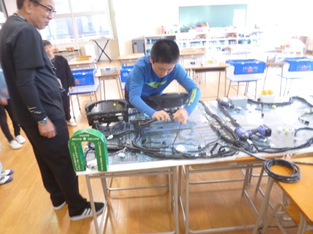 作業工程の疑似体験では、最初の説明をしっかりと聞き、自動車が作られていく一部の工程を覚え、時間内に作業ができる子がほとんどでした。子どもたちが楽しく体験することができました。片付けなども協力して行うことができました。子どもたちが楽しく活動できるように、いろいろと準備してくださった、トヨタスクールの先生方ありがとうございました。