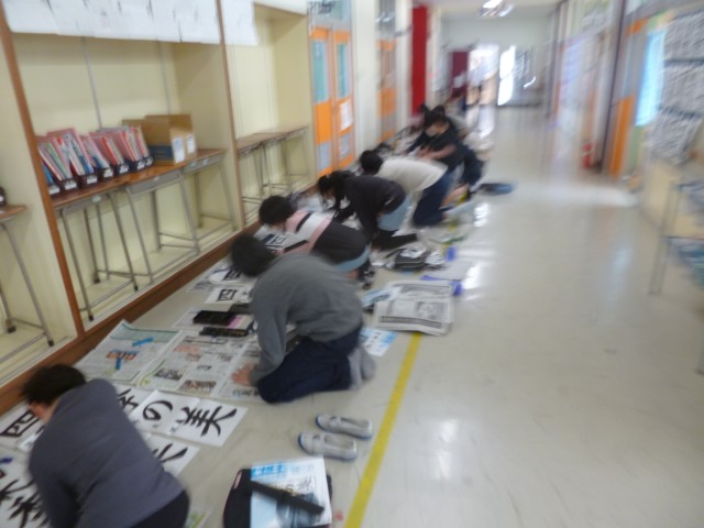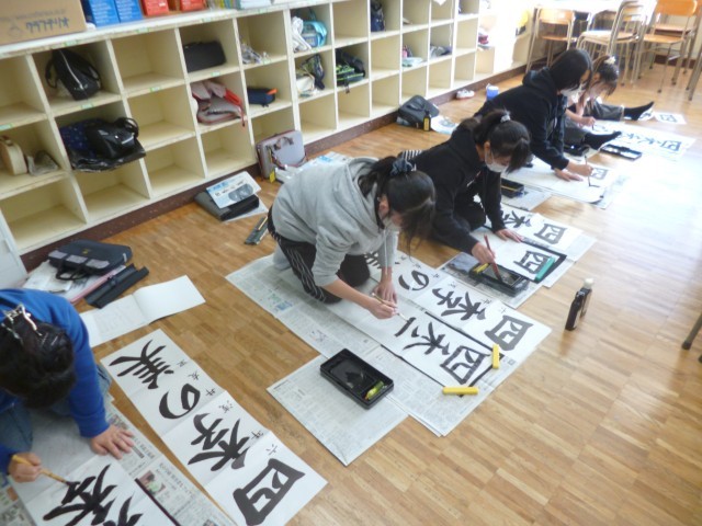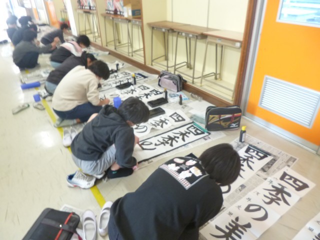 6年生が書き初めの練習を行いました。ろうかや教室の床一面に新聞紙と書き初め用紙を敷いて、大きく場所を使って練習しました。今年の文字は、「四季の美」です。お手本の文字をしっかりと確認しながら、一筆ごと丁寧に書いていました。