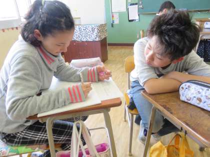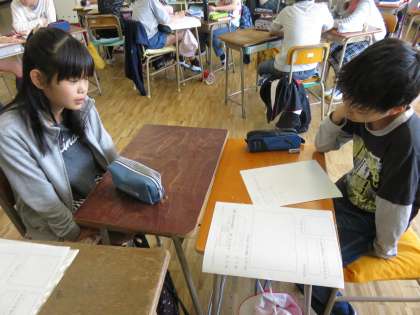 今日は、たてわりグループでの活動計画を立てました。1グループに6年生は2人しかいません(3人のグループが1つ)。少ない人数でどう全体をまとめるか、一生懸命考えていました。