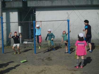 鉄棒の技でわからないものがあれば、担任の先生がお手本を見せてくれ、みんなのやる気がますますアップしていました。