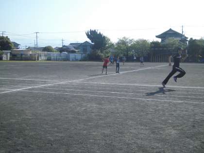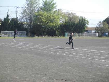 運動場を走っている子がいると、校長先生がメンバーに加わってリレーが始まりました。