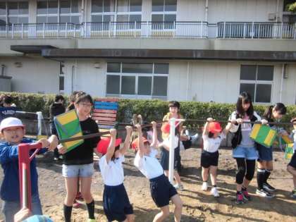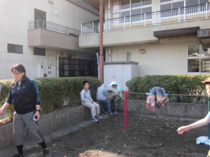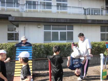 朝、子どもたちは、鉄棒運動に取り組んでいます♫