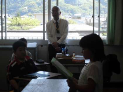 4年1組は、国語で作文発表です。