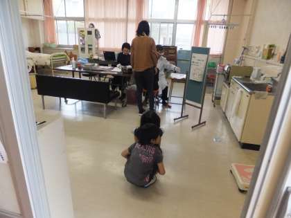 検診の順番を廊下で待っている時にも、列をそろえて静かに座っていることができました。