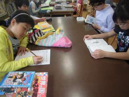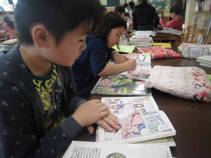 学年のすいせん図書を選んで読んだり,社会科の学習に関連した本を読んだり,自分のお気に入りのシリーズを読んだりしていました。