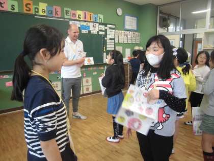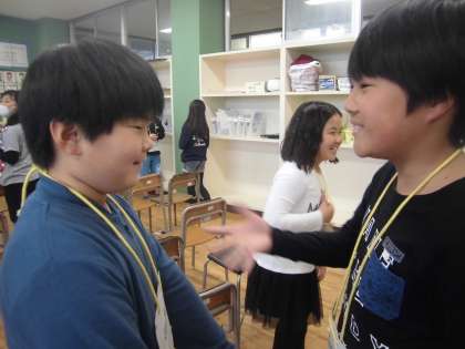 ★ジェスチャーを使って,前より多い人と英語を使ってできた。