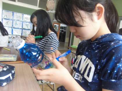 朝の時間を活用して,1年生にプレゼントするペットボトルじょうろをつくりました。
