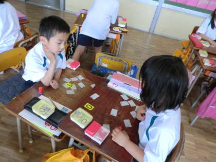 相手が1を引いて、0でなければ勝てるのに、なぜか0を引いてしまって大笑い。楽しんで学習していました。