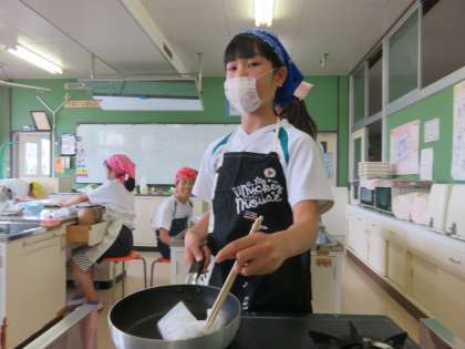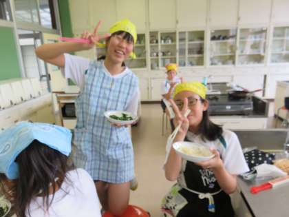 炒めたら試食です。友達とシェアしながら、炒め時間の違いや、油の量の違いなどを感じていました。