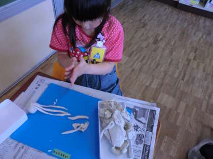 ねんどをしている子どもたちは、とても楽しそうです。隣の友達と話をしたり、自分でお話を作りながらねんどでいろいろ作ったりしていました。