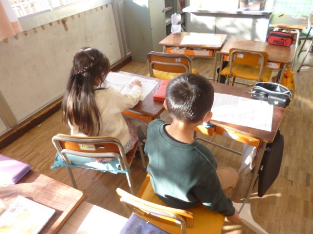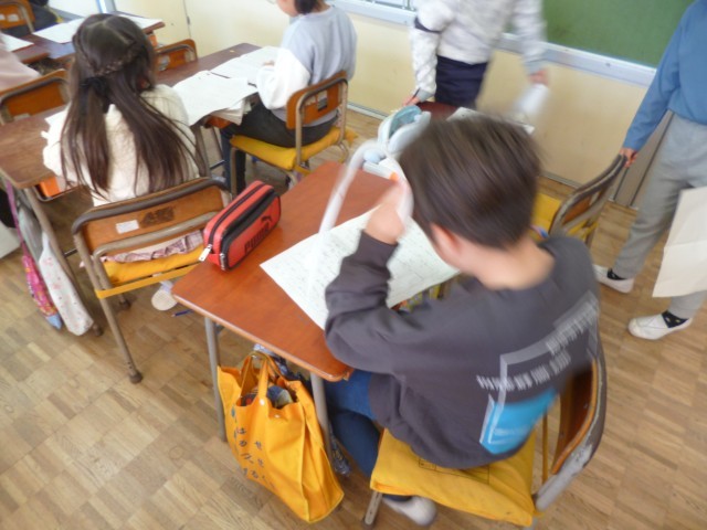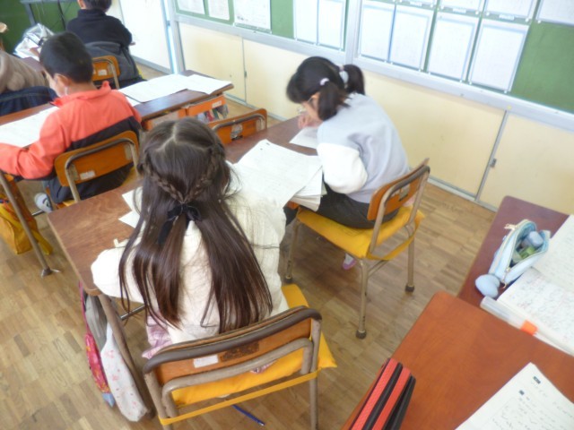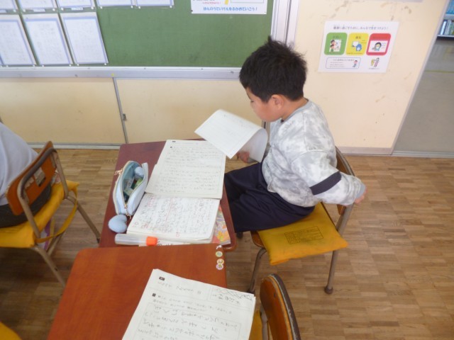 2年生国語「くらべて つたえよう」の授業の様子です。2つの同じようなものを比べて、似ているところ、違っているところの作文を書きました。友達がどんな作品を書いているのか、読んでみました。それぞれ、よいところを見つけて、感想を書きました。「ん~なるほど」といった表情で、真剣に読んでいました。