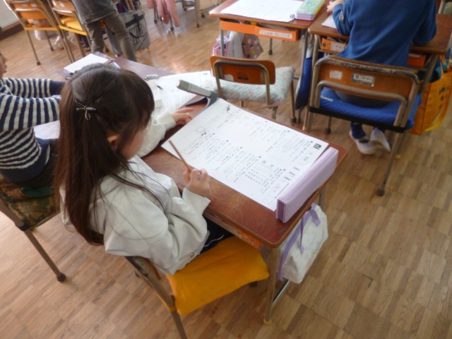 2生も2学期のまとめを頑張っています。国語のプリントや算数の九九の復習などのプリントに取り組んでいました。自分のペースで、しっかりと考えながら学習している姿に、子どもたちの成長を感じます。