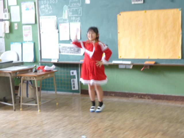 2年生がクリスマスパーティーを行いました。これまで準備も一生懸命に頑張ってきました。まず最初は、教室で自分の得意なことを披露しました。友達とグループで歌とダンスを発表する子、一人でダンスを発表する子、友達とおわらいをすることなど様々でした。後半の運動場では、おにごっこやティーボールなどをしました。子どもたちからは、たくさんの笑顔が見られました。