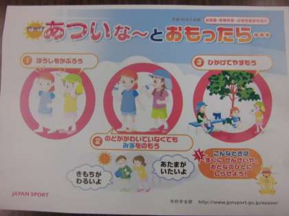 学校でも熱中症には十分注意して指導をしていきますが、御家庭でも以下の点につきまして、御協力をお願い致します。