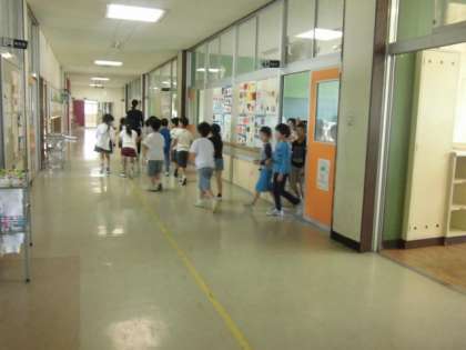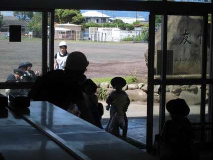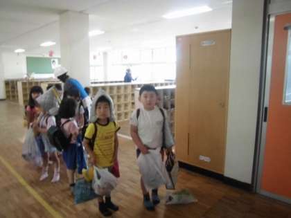 子どもたちは、お迎えの保護者と一緒に下校します。