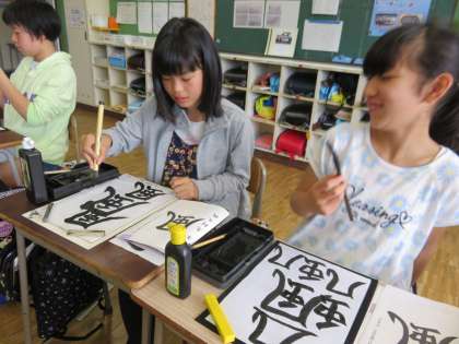 毛筆「風」の学習です。次回の清書に向けて、自分の課題を徹底的に練習しました。何回も書いてみたり、集中してていねいに書いてみたりしていました。