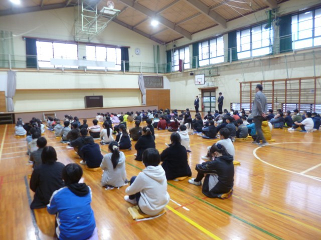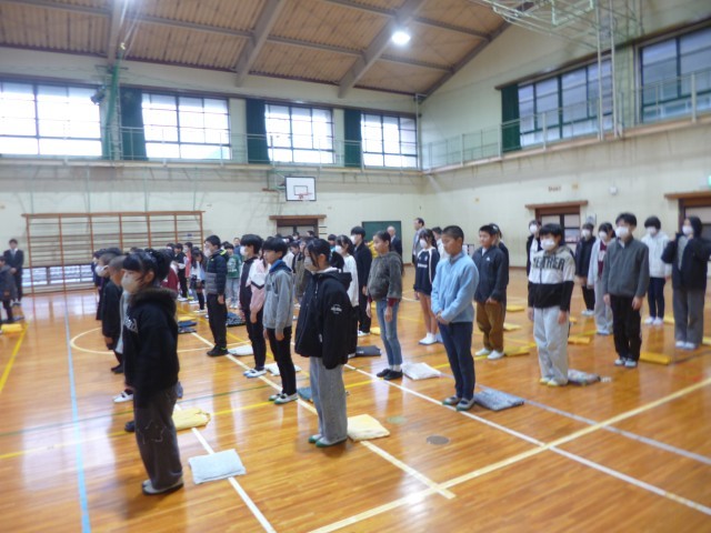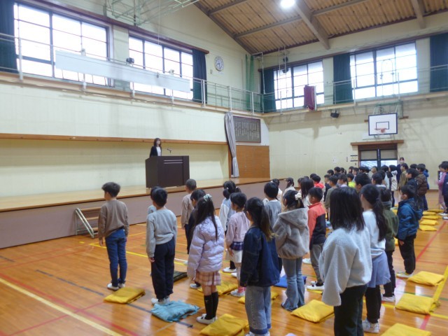 体育館で3学期始業式を行いました。体育館に集まったとき、どの学年も静かに待つ姿は大変立派で、2026年良い年になるなと感じました。一同あいさつのあと、校長先生から、「午年は、「力強さ」「前進」「躍動」を表し、成長のシンボルとしてとても縁起がいいものであります。皆さんもいろいろと成長していきましょう」というお話がありました。また、目標を立てて頑張っていきましょうというお話もありました。