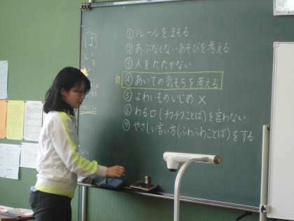 5時間目のはじめに、昼休みの過ごし方についてみんなで話し合いをしていました。みんなで仲良く安全に過ごすためにはどうしたらいいのだろうと話し合い、7つも意見が出ました。