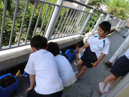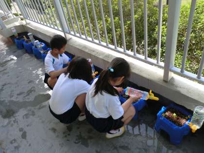 朝から大騒ぎで水やりをしていました。教室からベランダに出る入り口がぬれてしまったのですが、すぐにぞうきんを持ってきて拭いてくれる子もいました。