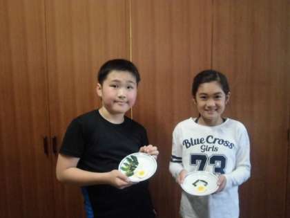 「ゆでる」ことをポイントとして、卵と青菜を料理しました。