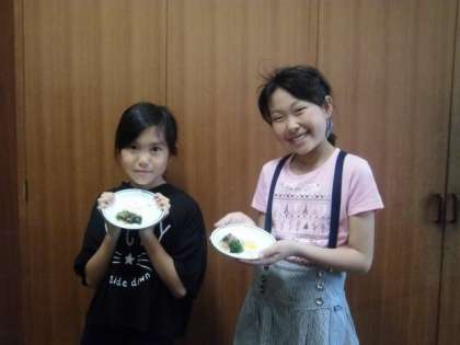 「ゆでる」ことをポイントとして、卵と青菜を料理しました。