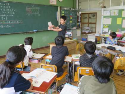 「分数のかけ算」の学習が始まりました。6年生の分数のかけ算は、分数×分数になります。その計算の仕方を考えました。