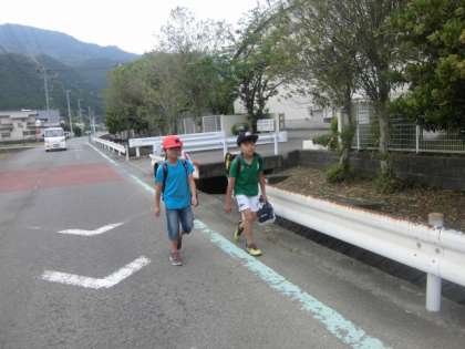 大平中学校近くの横断歩道では、黄色い旗で守られています♪