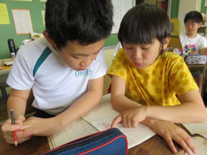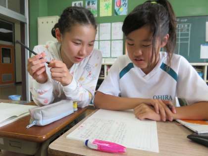 誤字や脱字だけでなく、「言葉の順番を入れ替えた方がいいよ。」や「ここのところの意味が少し分かりにくいよ。」など、お互いにアドバイスしました。