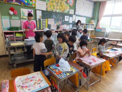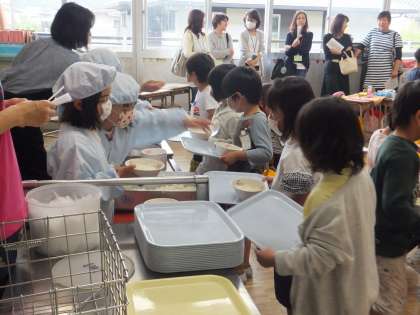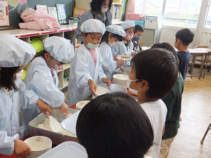給食当番も、その他の子も、とてもスムーズに配膳ができています。