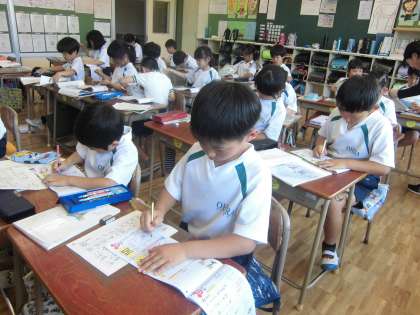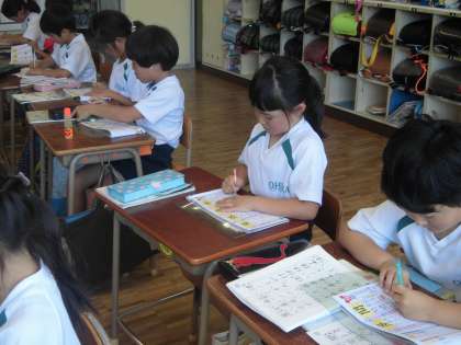 漢字の学習をしていました。姿勢を正して、丁寧に書いています。