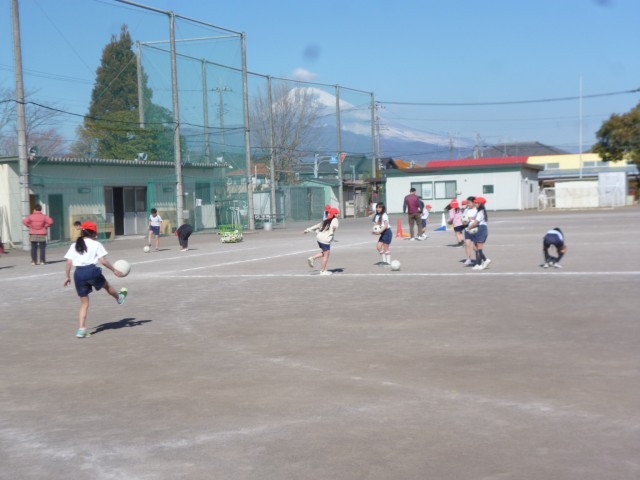 4年生体育の授業の様子です。サッカーを始まりました。ボールと友達になるために、ボールとたくさんふれ合います。リフティングをしたり、ドリブルをしたりと少しずつボールと仲よくなってきました。ボールと仲よくなることで、ボールを上手に蹴ることができるようになりそうです。