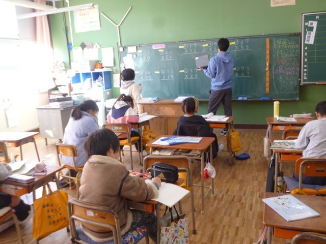 3年生算数「2けたをかける計算」の授業の様子です。まとめの計算練習をしました。たくさんの問題と解きました。筆算のきまりに気をつけたり、繰り上がりの計算に気をつけたりと一生懸命に問題に取り組みました。