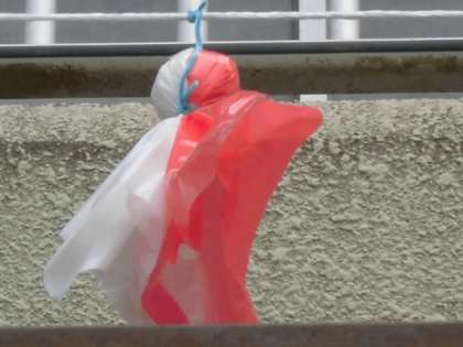 赤と白が、半分半分のてるてる坊主もあります。