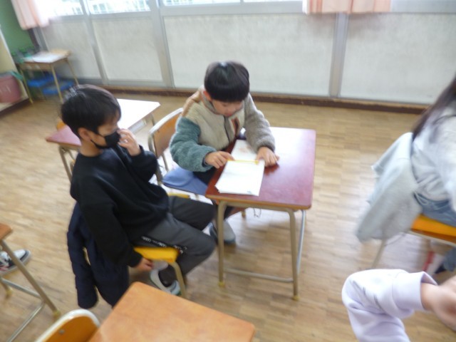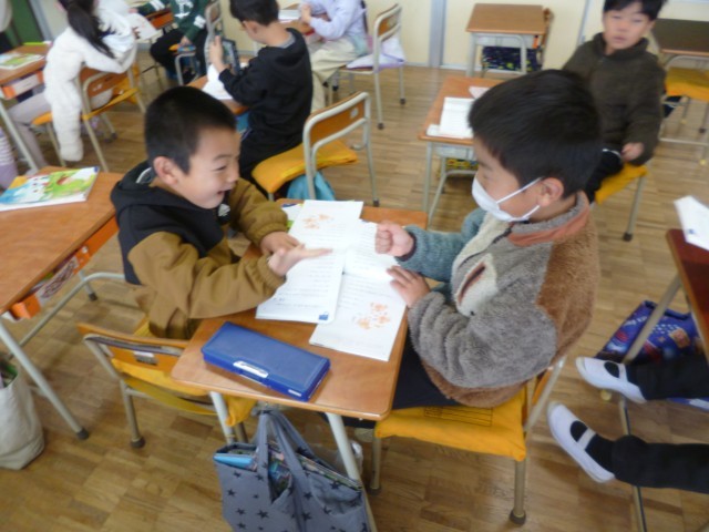 1年生国語の授業の様子です。「こんな じゃんけん しってる?」の一文一文に合わせて、子どもたちはじゃんけんをしました。「じゃんけんじゃがいもさつまいも」、「あいこでアメリカヨーロッパ!」、「ちっけった!」、「きっきっぱ!」などおもしろい言葉がたくさんありました。リズムに合わせて、楽しくじゃんけんをしていました。