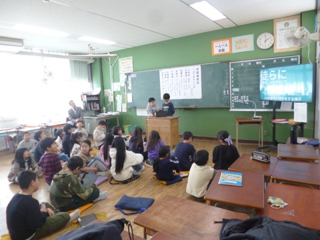 4年生が、第5校時の授業参観で学習発表会を行いました。国語、算数、理科、社会、図工、音楽、体育の各教科に分かれて、発表がありました。それぞれの教科ごとに問題を出したり、音楽では、演奏を披露したり体育では、実技を見せたりしました。保護者の皆様もクイズに参加するなど、楽しい雰囲気で授業が行われました。保護者の皆様、いろいろと御協力いただきありがとうございました。