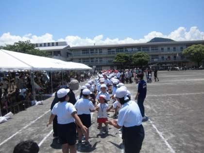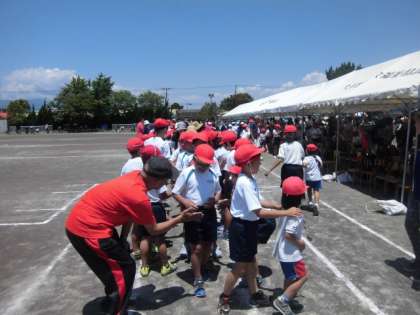 1年生から6年生が作ったビクトリーロードを、園児と5年生が手をつないで歩きます!