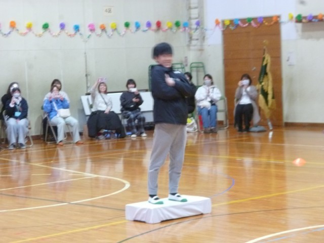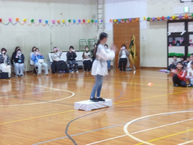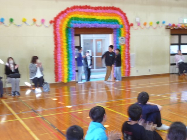 本日第3・4校時に6年生を送る会が体育館で行われました。最初に6年生が入場していきました。拍手の中、一人ずつ順番入場し、真ん中の台で、ひとポーズ。かわいく、そして、かっこいいポーズで登場。6年生を送る会の会場が一気に盛り上がりました。