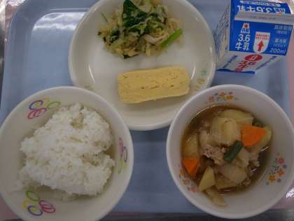 ごはん 牛乳 鶏肉とじゃがいものうま煮 あつやきたまご おひたし