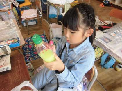 今日は雨だったので準備だけになりましたが、ひかりを通すとどうなるかなと予想しながら工夫して色を作っていました。