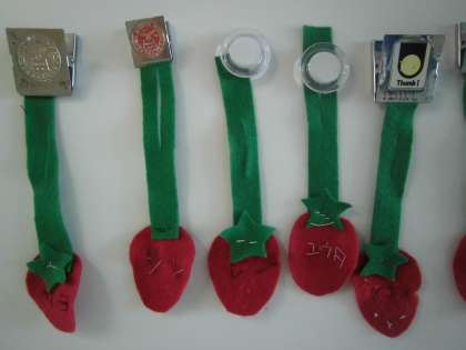 今日の家庭科では、玉結び・玉止めの練習をかねていちごのネームタグを作りました。ゲストママティーチャーもお招きしてチャレンジしました。「糸が抜けちゃった。」「よりを作るのが難しい。」「朝おばあちゃんに教えてもらったよ。」「種と縫い取りは色を変えよう。」と工夫しながら集中して取り組みました。ママ先生ありがとうございました。