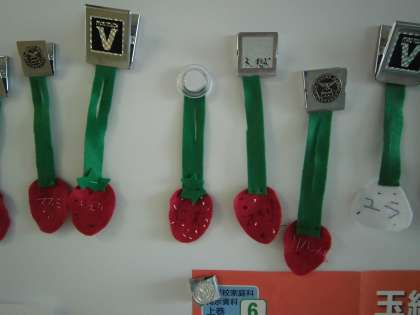 今日の家庭科では、玉結び・玉止めの練習をかねていちごのネームタグを作りました。ゲストママティーチャーもお招きしてチャレンジしました。「糸が抜けちゃった。」「よりを作るのが難しい。」「朝おばあちゃんに教えてもらったよ。」「種と縫い取りは色を変えよう。」と工夫しながら集中して取り組みました。ママ先生ありがとうございました。