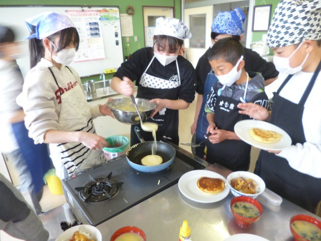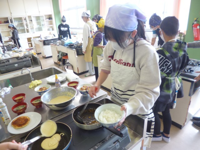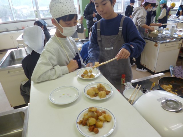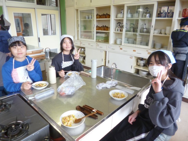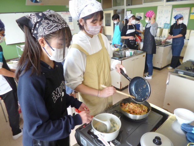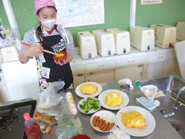 6年生家庭科の授業の様子です。「一食分の献立を」ということで、前時までに班ごとに計画をしていたので、今回は調理実習を行いました。「オムライス」、「ジャーマンポテト」、「たまごスープ」、「冷やし中華」「親子煮丼」など班ごとにいろいろと作りました。子どもたち、とっても楽しそうに調理実習を行っていました。