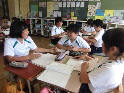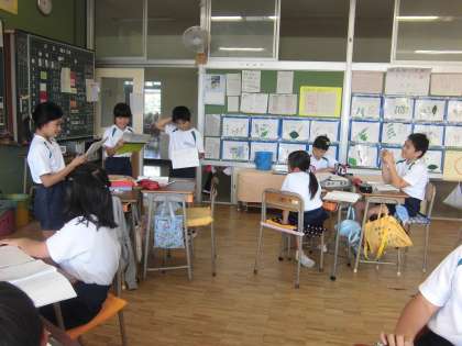 教科書に掲載されている『世間学者気質』を読み,「事実」「意見」「考え」「主張」のつながりを考えながら,「平成版・世間学者気質」をチームで作っていきました。