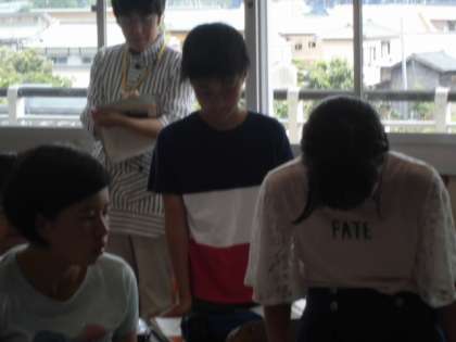 自分の意見を書いてから、グループで交流します。